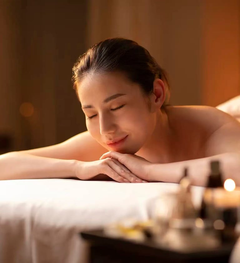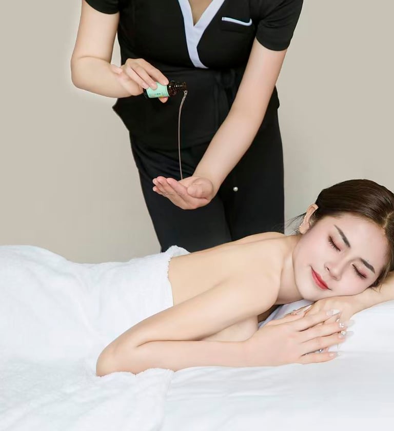 镇静类精油(如薰衣草)按摩能帮助身心放松,促进深度睡眠。